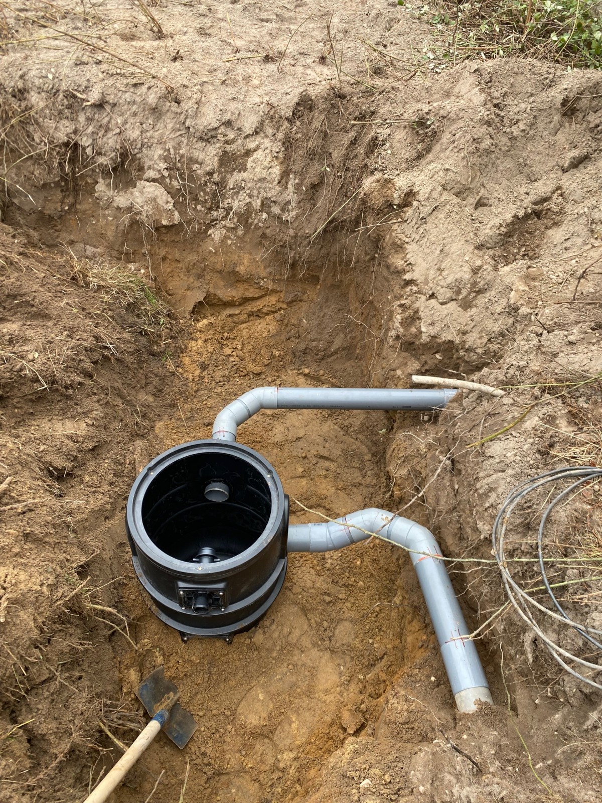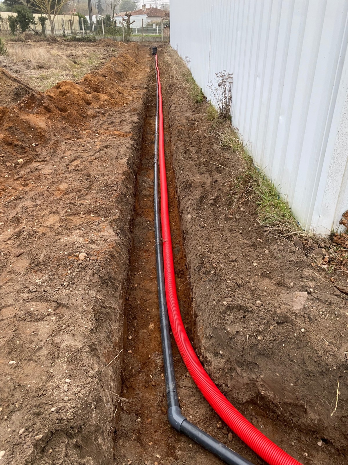 Nous avons également posé la pompe de refoulement avec la gaine pour l’alimentation électrique et le PVC pression diamètre 63 vers la microstation .