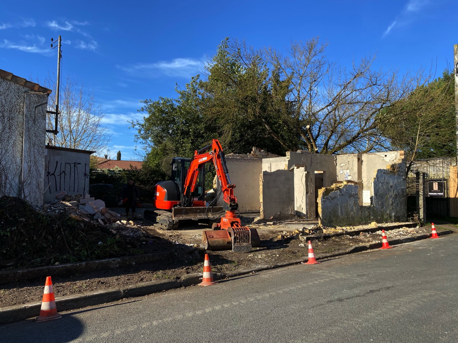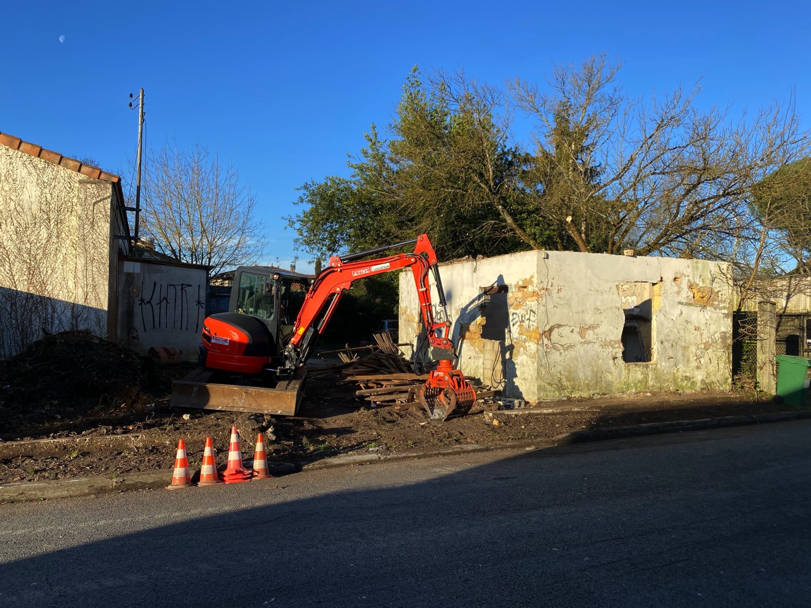 Nous avons récemment réalisé une démolition de maison en pierre à Bruges, proche d'Eysines, dans le cadre d'un projet de réaménagement. Ce chantier a nécessité une expertise pointue, de la préparation du terrain à l'évacuation des déchets, en passant par un curage complet des bâtiments. Chaque espace a été soigneusement vidé de ses matériaux, afin de garantir un environnement propre et sécurisé pour la suite des travaux.