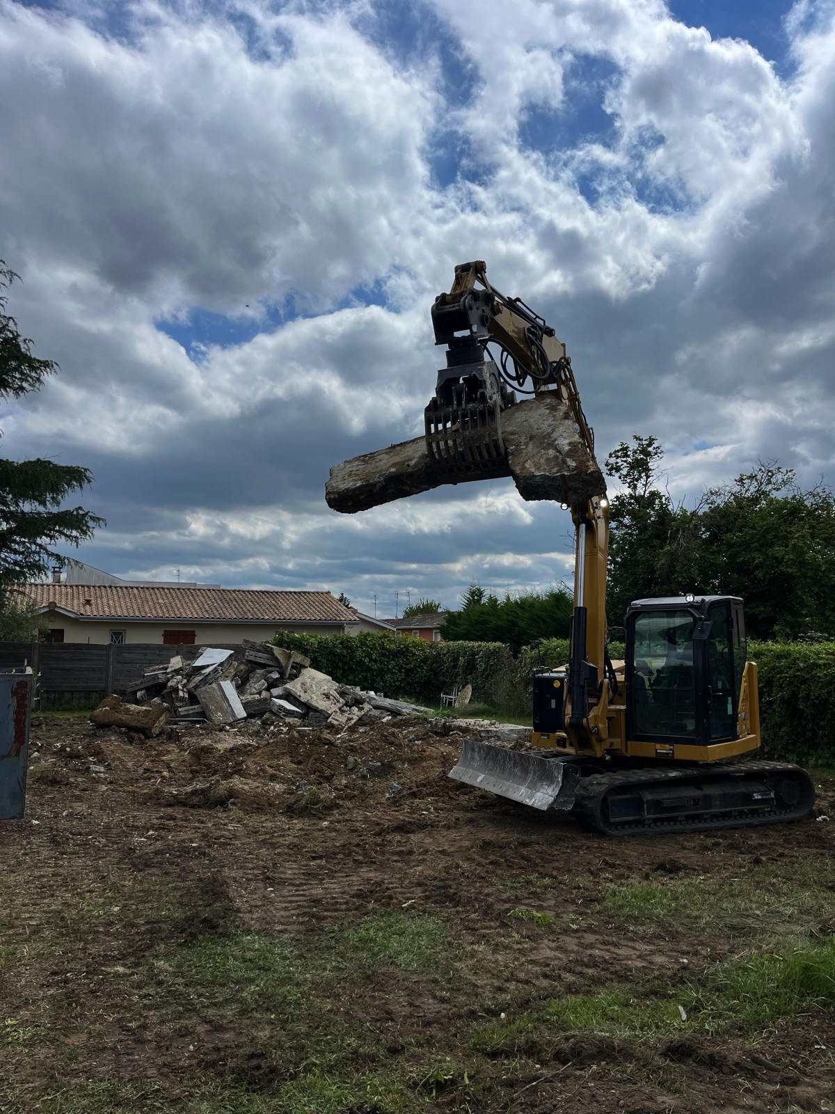 L’entreprise Videau Terrassement a récemment pris en charge la démolition d’une maison individuelle au Taillan Médoc, proche d’Eysines. Afin d'assurer la sécurité et la bonne gestion du chantier, nous avons commencé par installer la signalisation nécessaire, protéger la voirie, et mettre en place des mesures de sécurité avant le début des travaux.