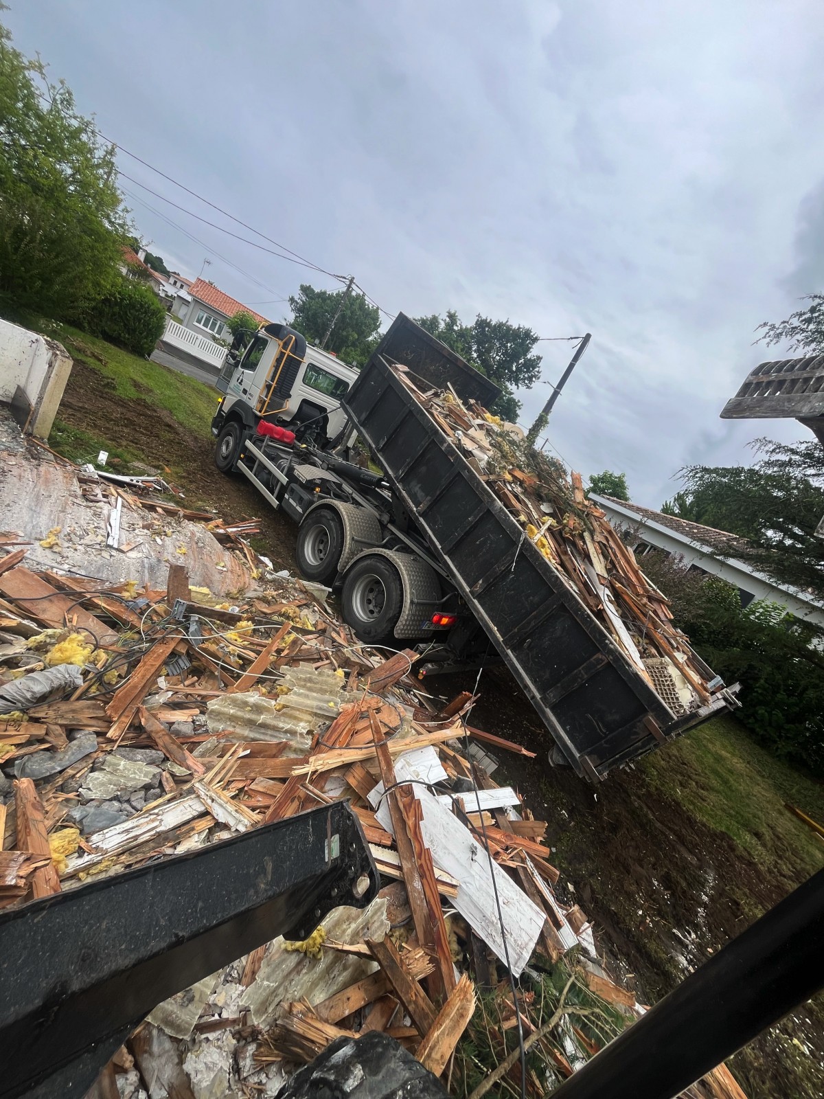 Nous avons ensuite utilisé nos bennes à gravats pour évacuer efficacement tous les déchets issus de la démolition, tels que les déchets industriels banals (DIB), bois, amiante, plastique, et fer. Ceux-ci ont été triés et dirigés vers des centres de traitement adaptés.