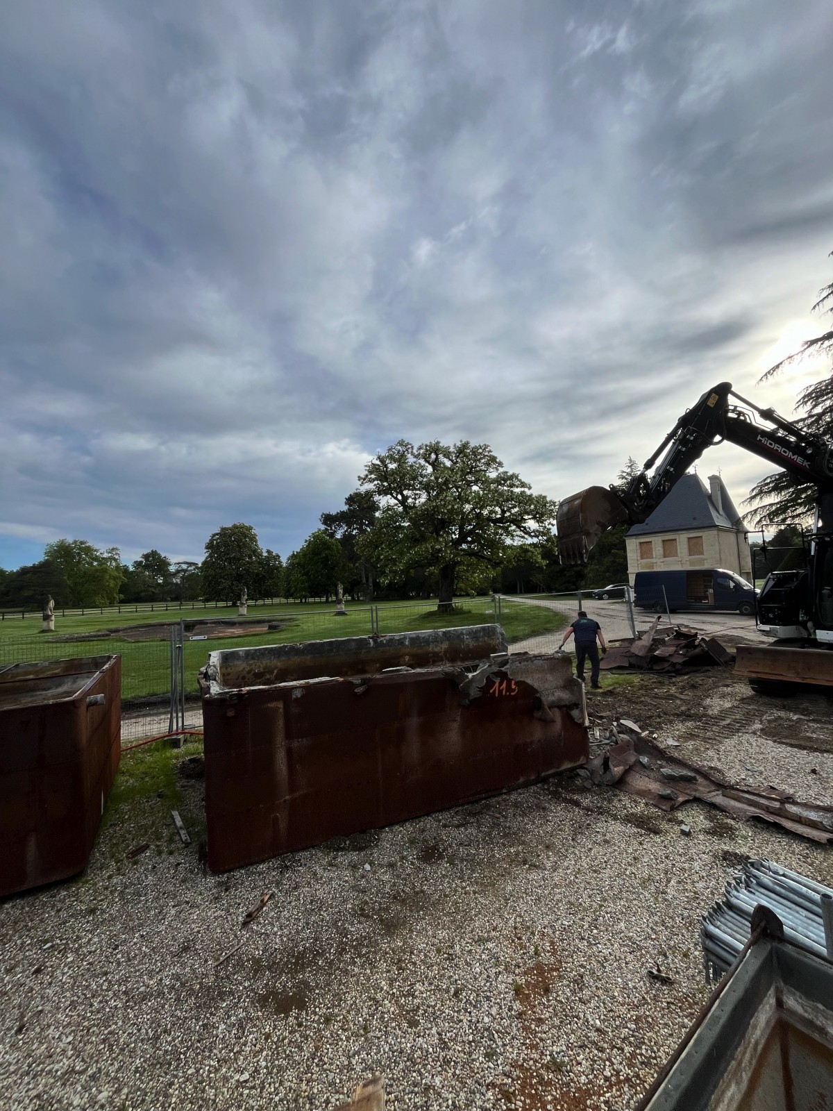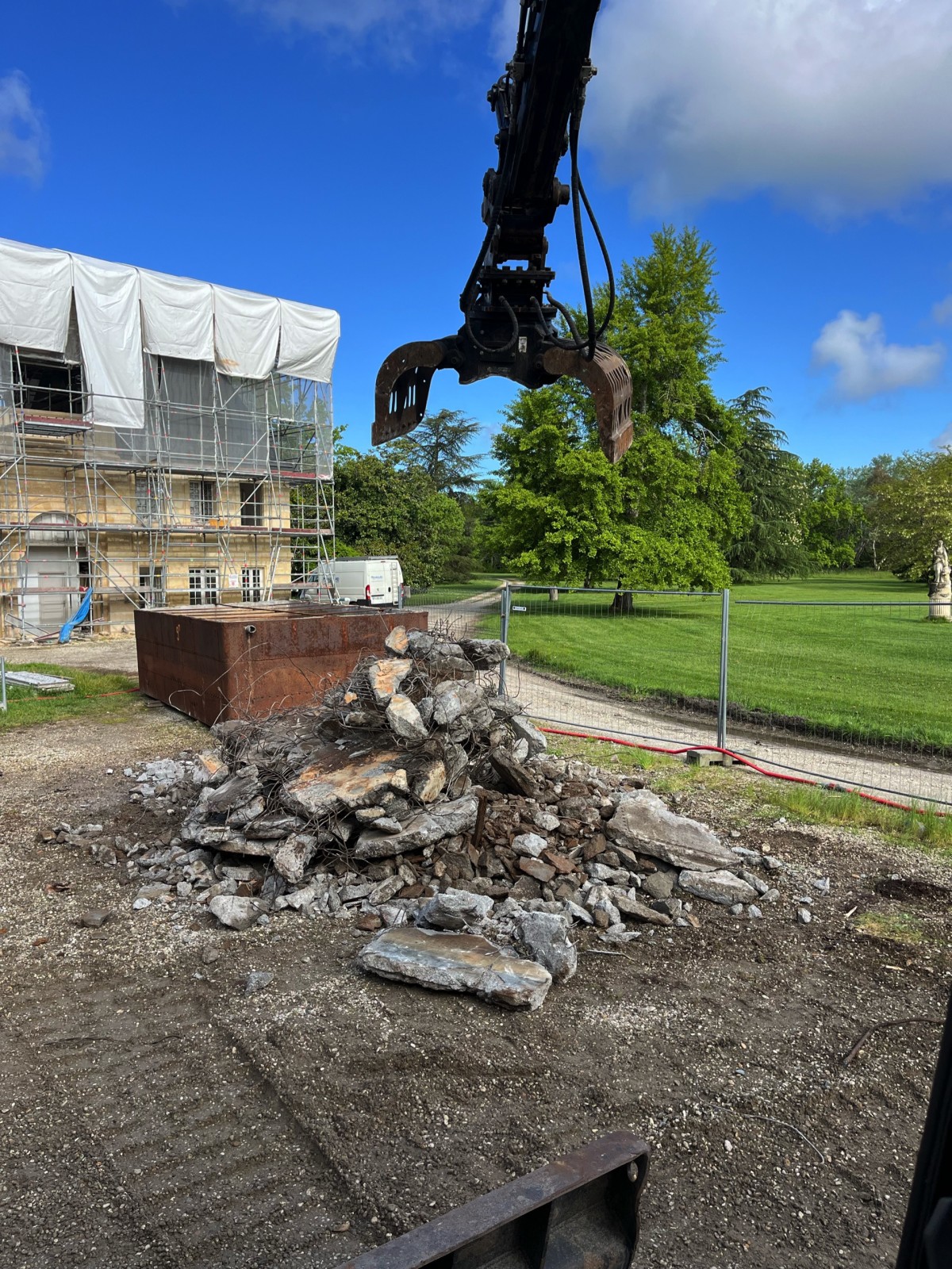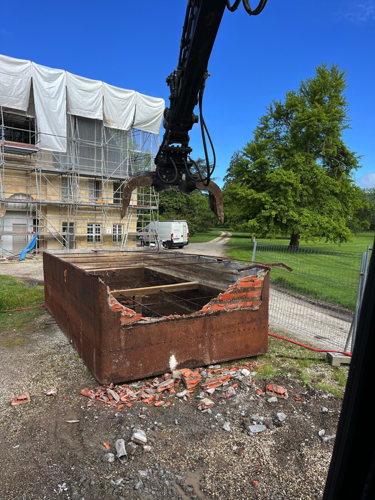 L’entreprise Videau est dotée des meilleurs outils de démolition pour mener à bien tous vos projets. Pour cette intervention, nous avons utilisé une pelleteuse de 15 T équipée d’une pince de tri et d’un BRH (brise béton) afin de casser les cuves en béton. Cet équipement spécialisé nous permet de réaliser des travaux de démolition complexes tout en respectant les normes de sécurité les plus strictes.