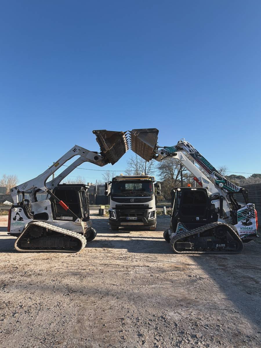 Nous sommes équipés des deux meilleurs chargeuses sur chenilles les plus robuste et puissantes du marché .
