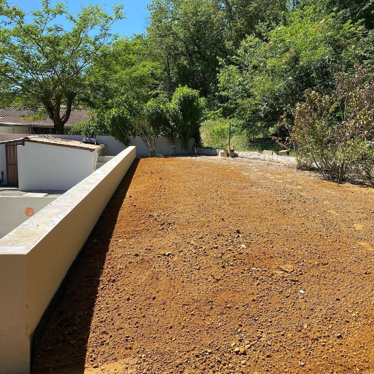 Une fois le système de drainage mis en place, nous avons procédé à la remise à niveau des terres. Cette étape est cruciale pour garantir une surface plane et homogène, facilitant ainsi la suite du chantier. Grâce à notre expertise, nous avons pu adapter la structure du sol aux exigences techniques et esthétiques du projet.